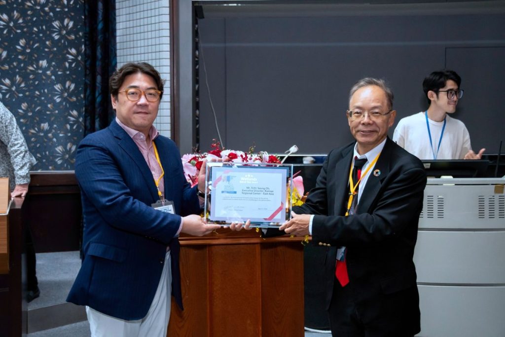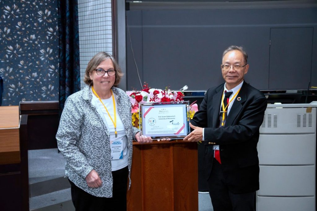 本校永續所方偉達教授頒發獎項給予SWS總會會長Susan Galatowitsch與拉姆薩東亞中心徐昇吾主任。(攝影/永續所江懿德校友)