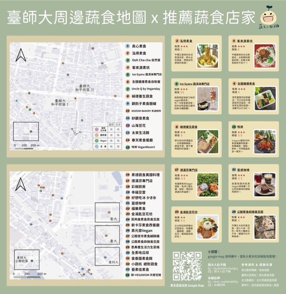 A map of vegetarian restaurants around National Taiwan Normal University, recommending high-quality vegetarian eateries.