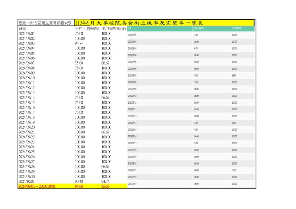 According to the most recent monitoring data (September–October 2024), the average registration rate reached 94.68% and data completeness rate 95.53%, demonstrating NTNU’s ongoing improvement in the implementation of its traceable and local food sourcing practices, ensuring a reliable, sustainable, and locally based campus food supply chain.