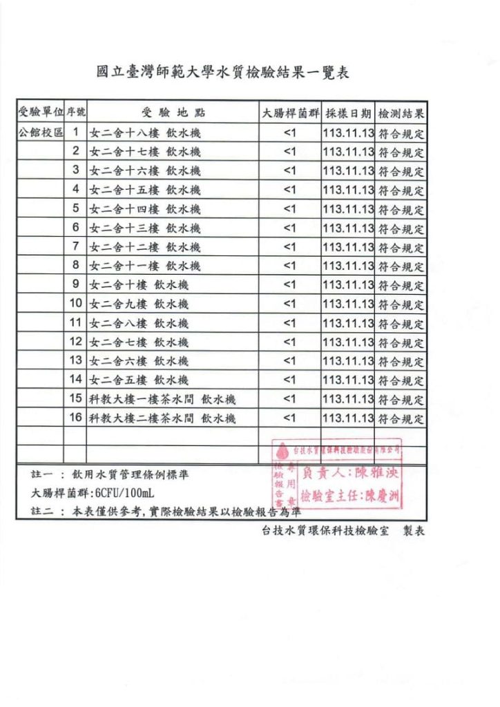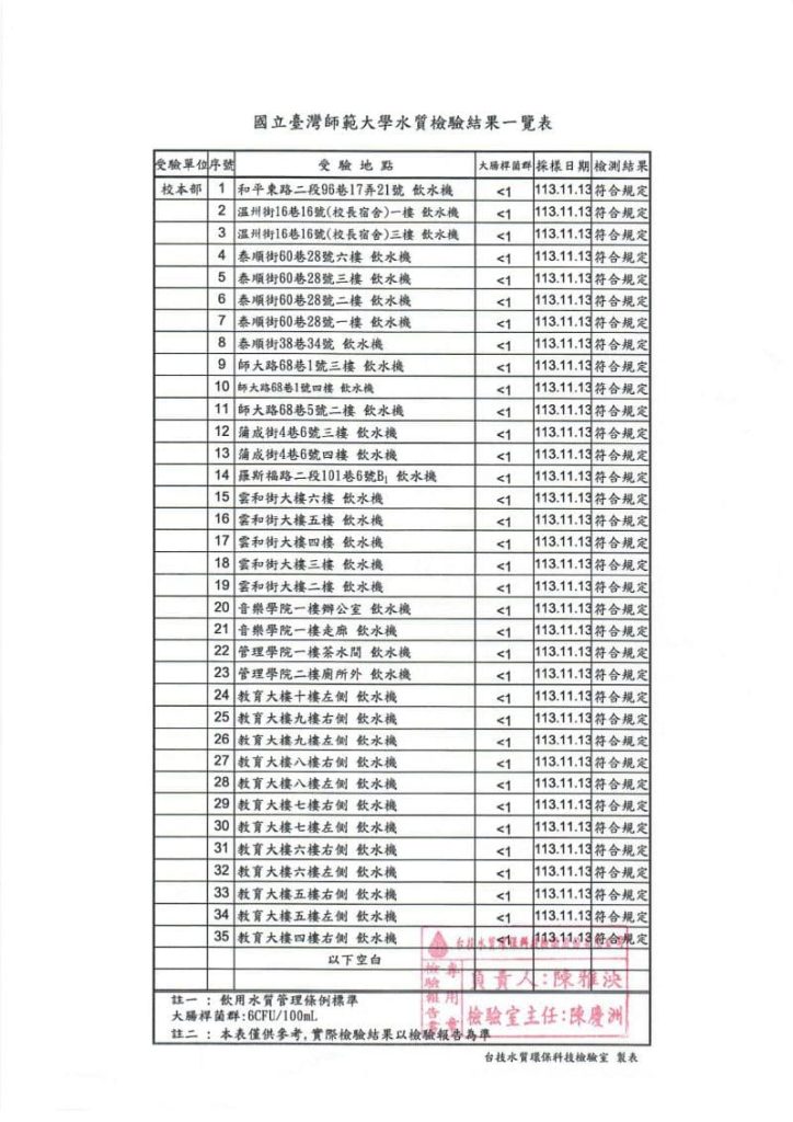 NTNU provides free drinking water to students, staff, and visitors through 504 water dispensers. Additionally, to ensure drinking water safety, the university’s Health Center implements drinking water safety management and tracking according to the “Drinking Water Management Regulations” and the “Regulations for the Use and Maintenance of Continuous Supply Fixed Drinking Water Equipment.” External contractors and the Health Center conduct regular water quality inspections, water quality reports are publicly available for transparency.