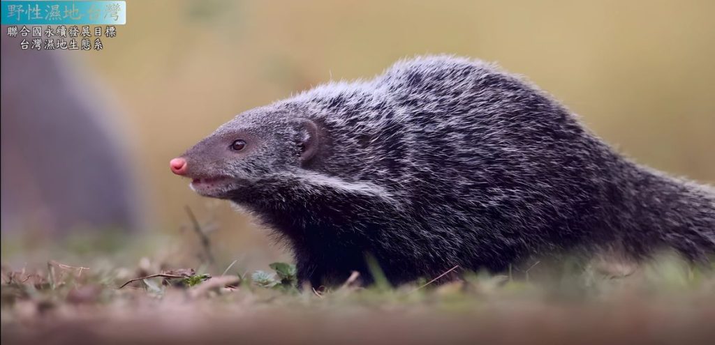 A scene from the documentary “Wild Wetlands,” featuring the crab-eating mongoose, a protected species inhabiting Taiwan’s intertidal zones and alpine wetlands.