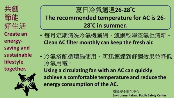 3 | 編列50萬預算供各單位申請汰換使用12年以上冷氣機。 | 3月至11月 | 環安衛中心 |