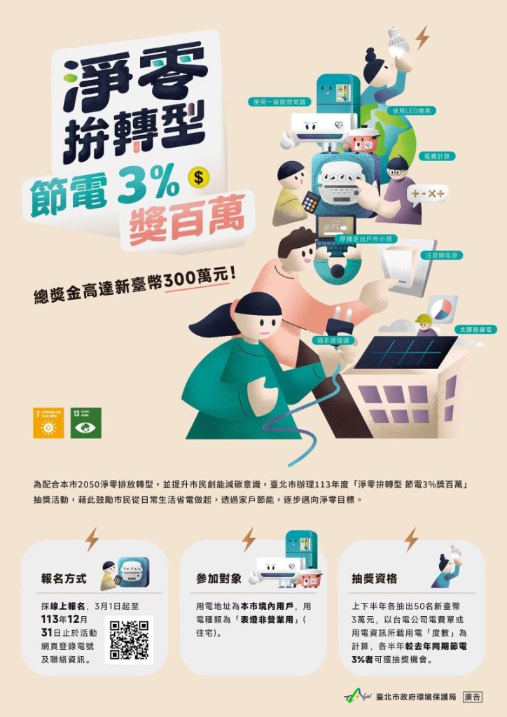 3. In 2024, the student club “Sustainability Club” collaborates with the Taipei City Environmental Protection Bureau on the Warm Sun Sustainability Festival, launching the “Net Zero Transformation: Save 3% on Electricity, Win a Million Dollar Award” program specifically for local Taipei communities. This program encourages learning about the importance of energy efficiency and clean energy in daily life.