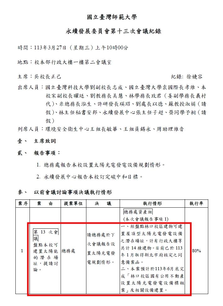 The Energy Conservation Working Group discussed and finalized energy-saving measures for improving building energy efficiency at National Taiwan Normal University by 2024.