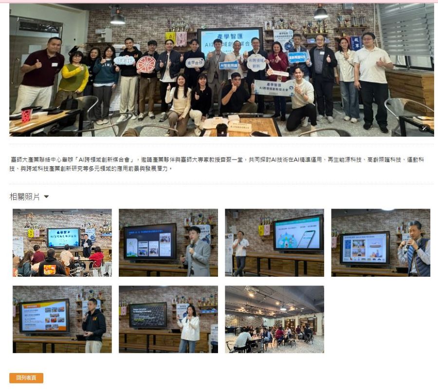 3. Through the NTNU Industry Liaison Center, the “AI Cross-Disciplinary Innovation Matchmaking Conference” actively promotes industry-academia collaboration both within and outside the university, driving the innovative application of low-carbon and sustainable technologies. The event focuses on the precise application of AI, renewable energy technologies, and cross-disciplinary industrial innovation research, bringing together experts, scholars, and industry partners to discuss the application prospects of AI in improving energy efficiency and reducing carbon emissions. Through technology sharing and business transformation exchanges, the event assists enterprises in adopting smart and low-carbon solutions, showcasing the university’s key role in promoting the practical application of AI technology and low-carbon energy innovation, and fostering sustainable industrial development and technological upgrades.