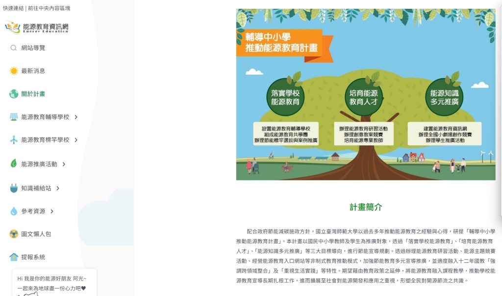 NTNU has long supported the Ministry of Economic Affairs’ Energy Administration’s “Energy Education Assistance Program for Elementary and Secondary Schools” public website(https://origin-energy.mt.ntnu.edu.tw/about_brief.php)